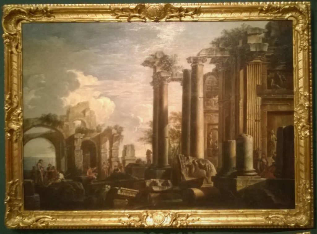 Die dargestellten Bauformen sind in Ihrer Detailgenauigkeit das Ergebnis eines intensiven Antikenstudiums. Die einzelnen Teile fügte Ghisolfi jedoch zu vollkommen neuen Kompositionen zusammen. Die Ruinen verweisen auf die vergangene Größe und das tragische Schicksal des antiken Karthago.