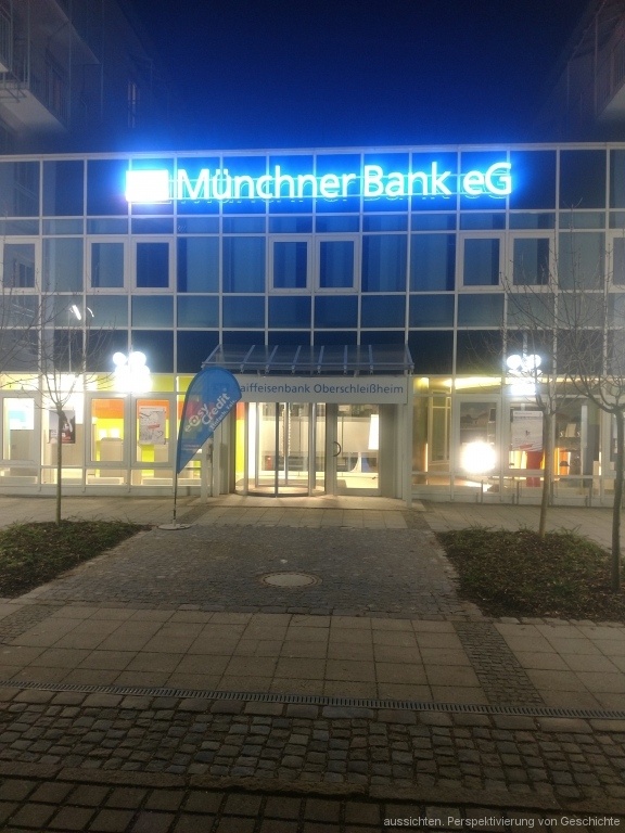 Nach der Fusion der Raiffeisenbank Oberschleißheim eG mit der Münchner Bank eG im Jahre 2012 firmierte die Raiffeisenbank Oberschleißheim noch für einige Jahre als Zweigniederlassung der Münchner Bank eG. Seit kurzem ist die Übernahme auch durch die Beschilderung am Gebäude sichtbar. Erfreulich ist, dass über dem Eingang der Oberschleißheimer Geschäftsstelle aus nostalgischen Gründen noch immer der alte Name „Raiffeisenbank Oberschleißheim“ steht. Innerhalb der Münchner Bank ist Oberschleißheim darüber hinaus eine Filialdirektion, was betriebsintern gegenüber einer Filialleitung operative Vorteile mit sich bringt.